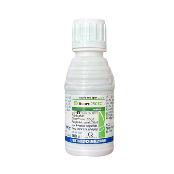 Thuốc trừ nấm Score 250EC chứa Difenoconazole, một hoạt chất mạnh mẽ trong việc kiểm soát nấm phấn trắng. Sản phẩm giúp bảo vệ cây trồng khỏi sự tấn công của nấm, đồng thời cải thiện sức đề kháng của cây.