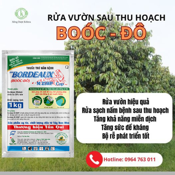 Boóc-Đô không chỉ giúp cây trồng của bạn được làm sạch và bảo vệ sau thu hoạch, mà còn là giải pháp an toàn và thân thiện với môi trường. Với thành phần được phối sẵn giữa Đồng và Vôi, Boóc-Đô giúp tiết kiệm thời gian, công sức và đảm bảo hiệu quả tối ưu trong việc tẩy sạch rong rêu, nấm bệnh, bảo vệ cây trồng khỏi các tác nhân gây hại.