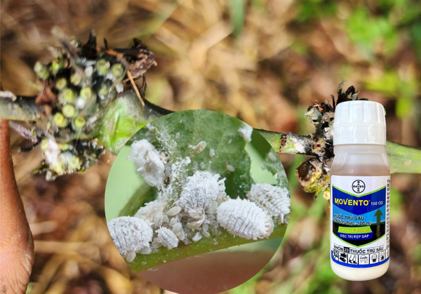 Để diệt rệp sáp, bà con pha 16ml Movento 150OD trong bình 16L nước và phun đều lên cây. Với cơ chế lưu dẫn hai chiều, Movento 150OD đảm bảo tiêu diệt triệt để rệp sáp từ phần rễ đến ngọn cây, giúp cây phát triển mạnh mẽ mà không bị sâu bệnh tấn công.