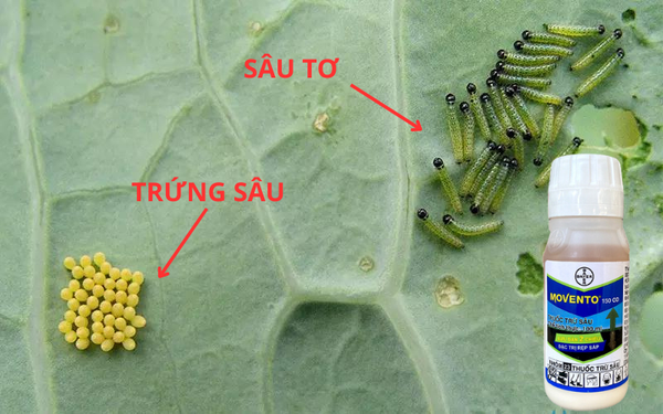 - Để trị sâu tơ: Pha 40ml Movento 150OD trong bình 25L nước, phun khi sâu non mới nở hoặc sau 5-7 ngày kể từ khi thấy bướm xuất hiện.