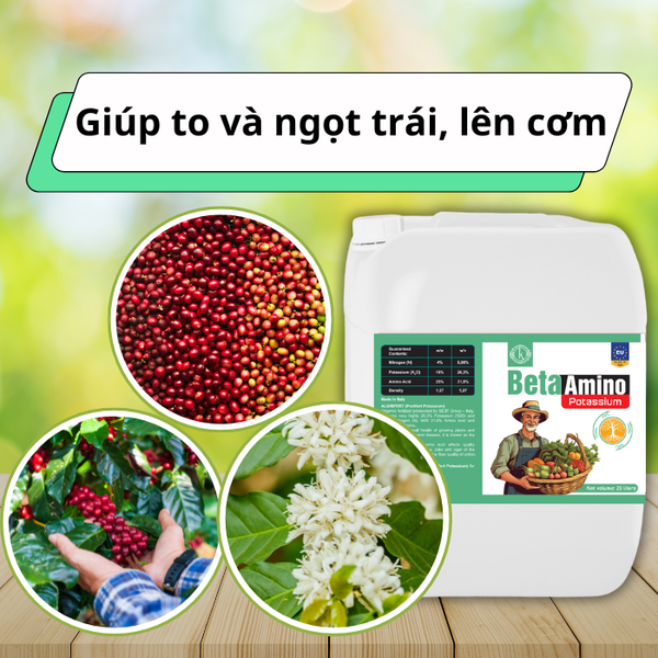 BETA AMINO POTASSIUM là phân bón hữu cơ cao cấp từ Italy, mang lại giải pháp toàn diện cho cây trồng, giúp tăng năng suất và chất lượng nông sản một cách bền vững. Sự kết hợp giữa Kali và Amino axit không chỉ hỗ trợ cây phát triển khỏe mạnh mà còn đảm bảo trái đẹp, ngọt và đầy cơm – lựa chọn lý tưởng cho nông dân hiện đại.