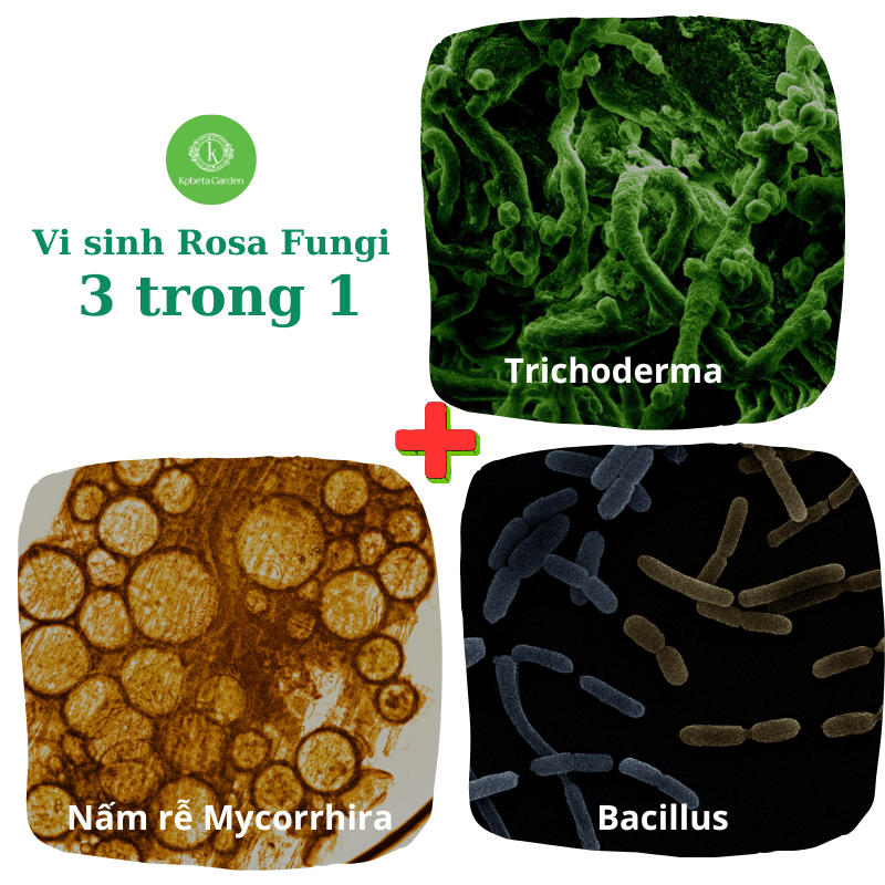 – Bảo vệ cây trồng: tăng cường hệ vi sinh vật có lợi, giúp cây kháng bệnh tốt. Nấm Mycorrhiza làm tăng hơn 1000 lần bộ rễ, nấm Trichoderma đối kháng các loại nấm gây bệnh, vi khuẩn Bacillus giúp cây trồng tăng cường sức đề kháng