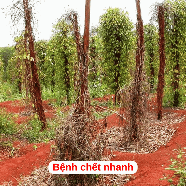 - Bệnh chết nhanh trên tiêu (vàng lá, rụng lá, thối đốt, thối rễ).