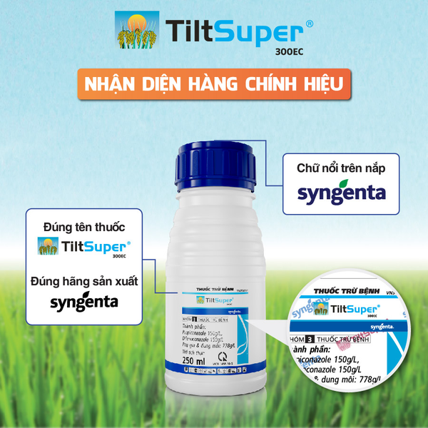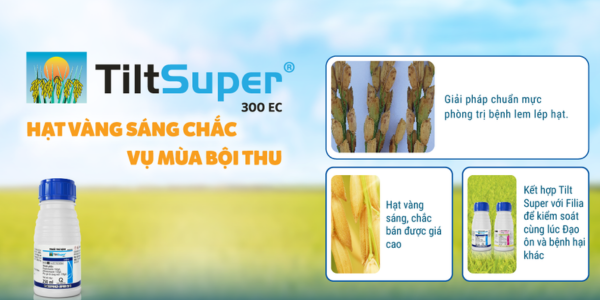 Tilt Super® 300EC là thuốc trừ bệnh phổ rộng, giải pháp số 01 về phòng trừ lem lép hạt, mang lại hiệu ứng “hạt vàng sáng chắc”. Từ đó, giúp tối ưu năng suất và nâng cao giá trị hạt lúa.Thông Tin Sản Phẩm
