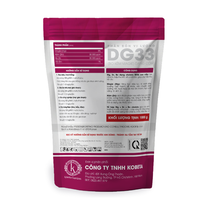 👉 Mg, Zn, Bo dạng chelate EDTA cao cấp: tan nhanh trong nước, dễ phối trộn, cây hấp thụ tối ưu, hạn chế thất thoát dinh dưỡng.