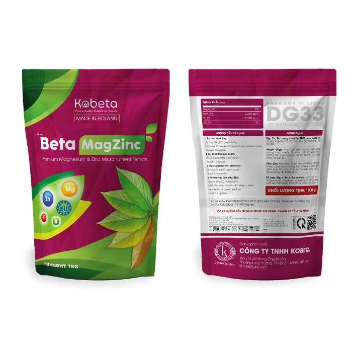 Trung Vi Lượng MAGIE KẼM BA LAN Beta MagZinc – Túi 1kg là giải pháp trung vi lượng cao cấp nhập khẩu Ba Lan (Châu Âu), chuyên dùng cho các giai đoạn sinh trưởng quan trọng của cây trồng. Sản phẩm cung cấp Magie (Mg), Kẽm (Zn), Bo (B) dưới dạng chelate EDTA cao cấp, giúp cây hấp thụ nhanh – phát huy hiệu quả tối đa – bền cây lâu dài.